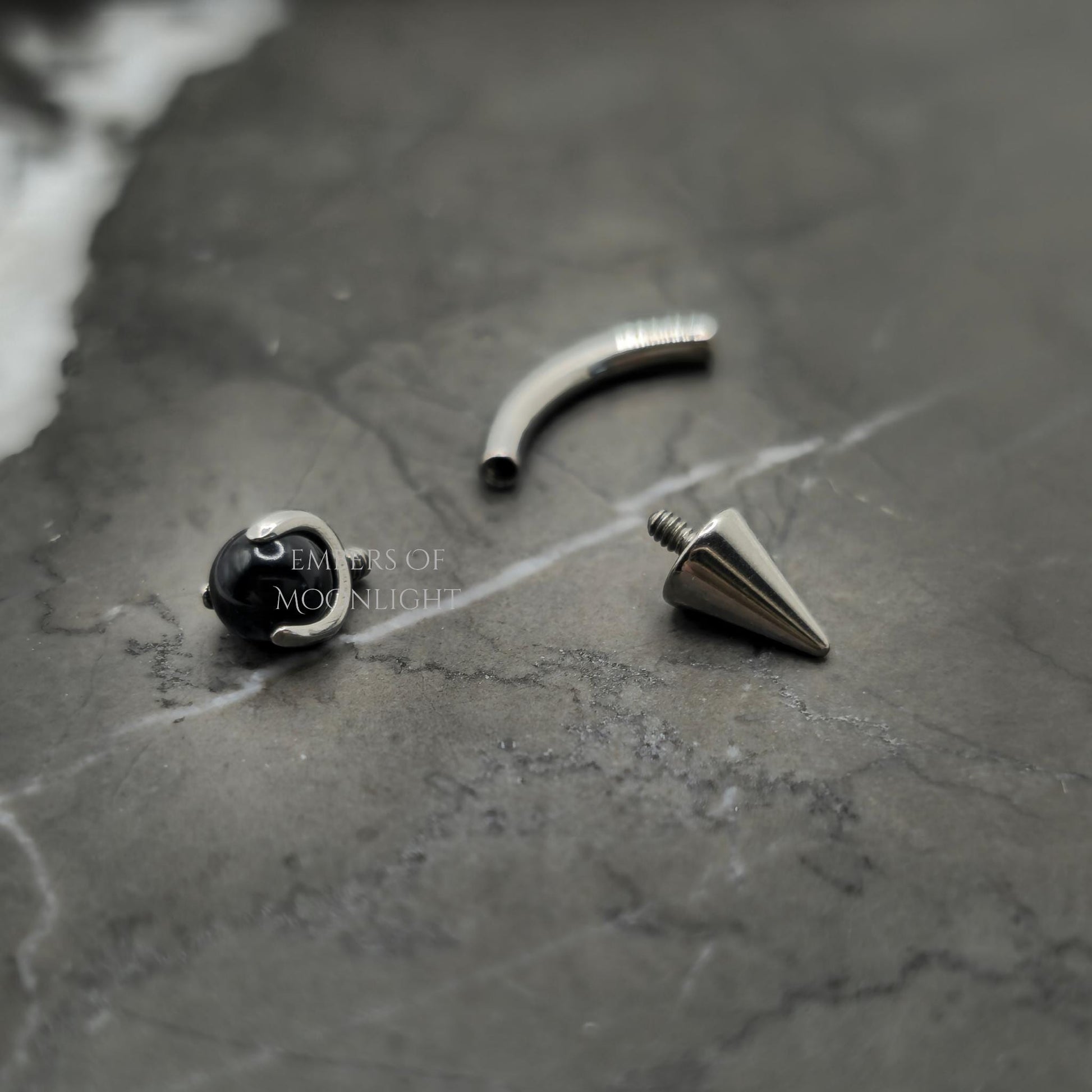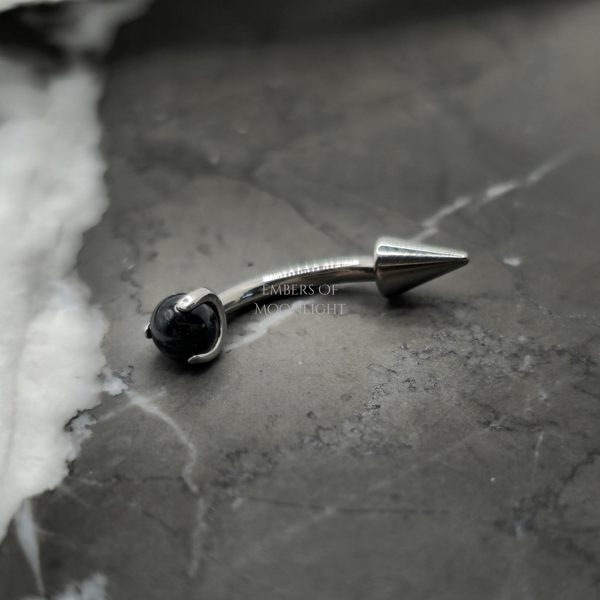 Black Agate + Spike Curved Barbell
