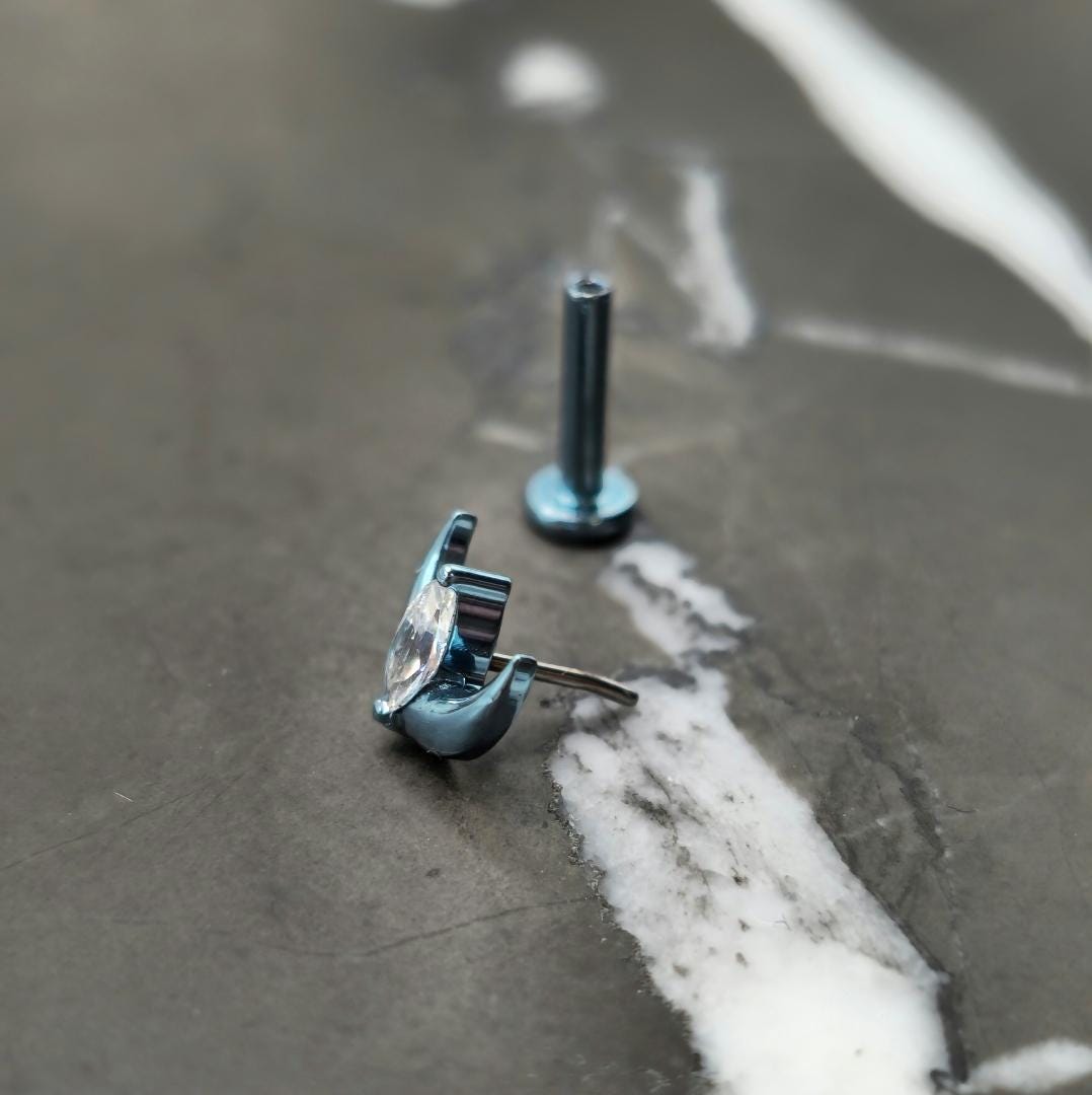 Crescent Moon Threadless Labret Flat Back Stud with Marquise Zirconia Gemstone Crystal